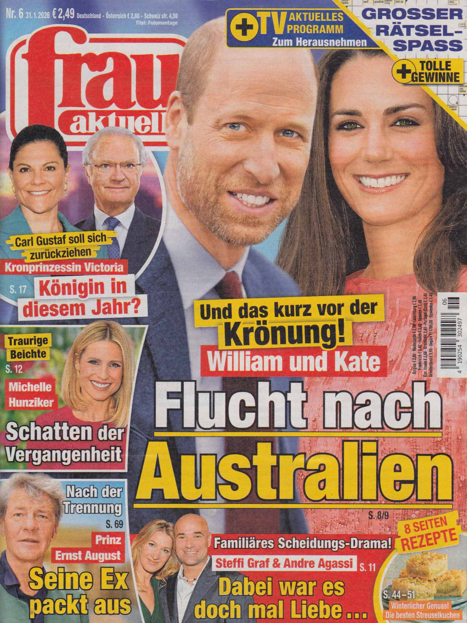 „FRAU AKTUELL“ überrascht Sie jede Woche mit prickelnden, aufregenden News, Fotos und Hintergrundberichten von Promis aus Gesellschaft, Adel, Film und TV.